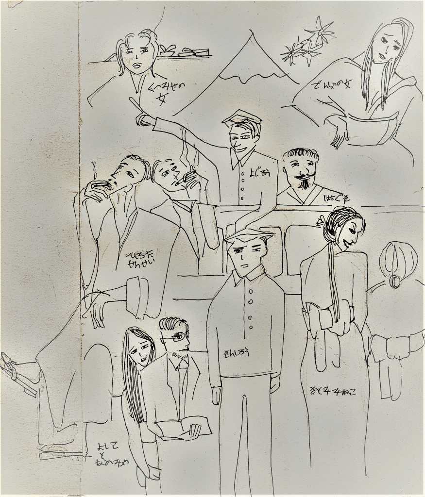 Sanshiro Illustrations of the characters from the book Sanshiro by Natsume Soseki. It is a book similar in theme to Catcher in the Rye but, much better. Feels like Amarcord by Federico Fellini in it’s roller coaster encounters and surreal feelings. Share this: Print (Opens in new window) Print Email a link to a friend (Opens in new window) Email Like Loading... Related